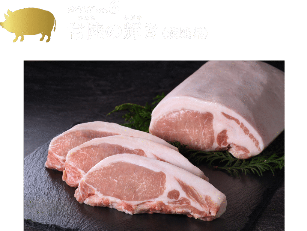 茨城県と生産者が協力して開発した銘柄豚「常陸の輝き」。一般の豚肉に比べて霜降りが多く、やわらかな肉質が特長です。専用の飼料でじっくりと育てることで、旨味や甘味のもととなるアミノ酸が豊富に含まれ、「やわらかさ」「旨味の強さ」「香りの良さ」が三拍子そろった逸品に仕上がっています。